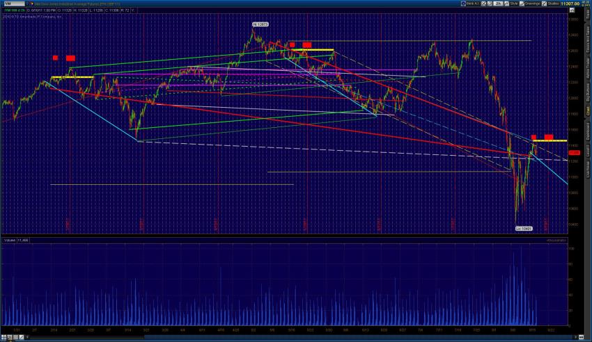 The /YM is at the lower range at the time of this update's constution. and is now showing signs of weakening past support after trading in this range. The expectation is a 'break through' of this support to new lows.